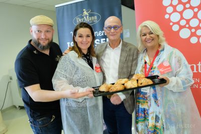 Und dann kam es zum Powidl-Contest, bei dem sich das Team Kasper, Turin und Feicht mit Frau klar durchsetzen konnte. Sie formten in der vorgegebenen Zeit die meisten Powidlgolatschen. „Alle haben grosse Fingerfertigkeiten bewiesen. Leider haben wir nicht gewonnen“, scherzte Barbara Karlich, die zum Frühstück eher die „Salzige“ ist: „Ich schwöre auf mein selbstgemachtes Nussbrot mit Butter drauf.“ Eher der „Süsse“ ist Schauspieler Hubert Wolf: „Nichts geht über ein köstliches Schokocroissant nach dem Aufstehen.“ Apropos Lieblingsfrühstück der Wienerinnen und Wiener: Hier liegt ganz klar noch das klassische Semmerl in Führung. Aber die Zimtschnecke ist bei DerMann mittlerweile der Verkaufsschlager bei den Süssspeisen. Dahinter folgt die Topfengolatsche.