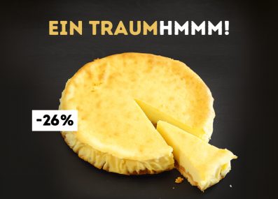Vom 27.04-10.05 erhalten Sie 26 % Rabatt auf unseren gebackenen Topfentraum. Geniessen Sie die vegetarische Köstlichkeit um nur € 4,80 statt € 6,40!