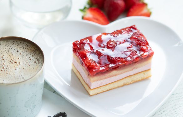 Für diese erfrischende Schnitte werden Biskuitböden mit Erdbeermarmelade und Erdbeercreme zusammengesetzt, mit frischen Erdbeeren belegt und mit Gelee überzogen.