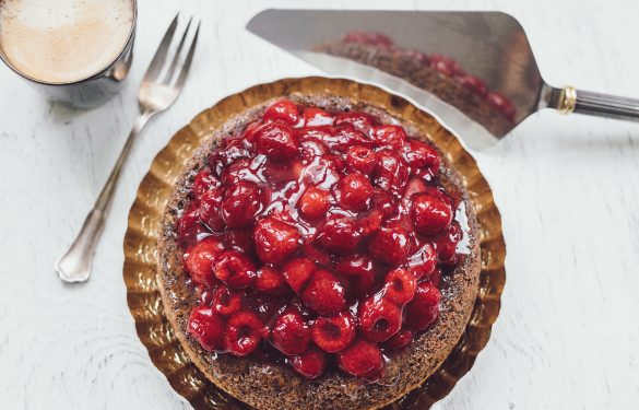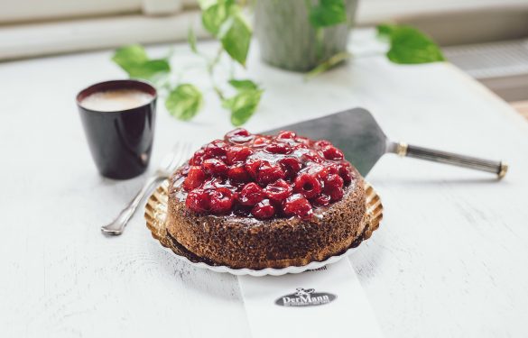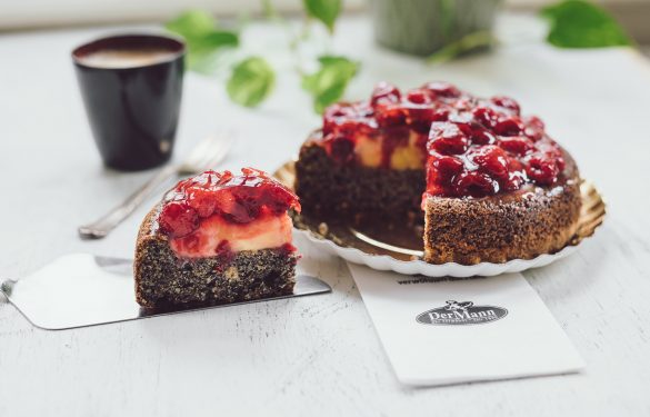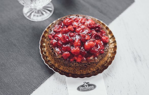 Saftige Mohnmasse mit Waldviertler Mohn, gefüllt mit Vanillepudding, belegt mit fruchtigen Himbeeren.