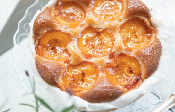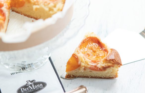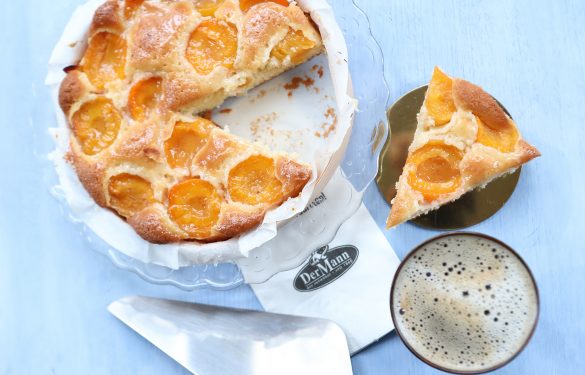 Eine saftige Dinkel-Sandmasse wird mit Marzipan verfeinert, mit Marillenhälften belegt und nach dem Backen mit Gelee überzogen.