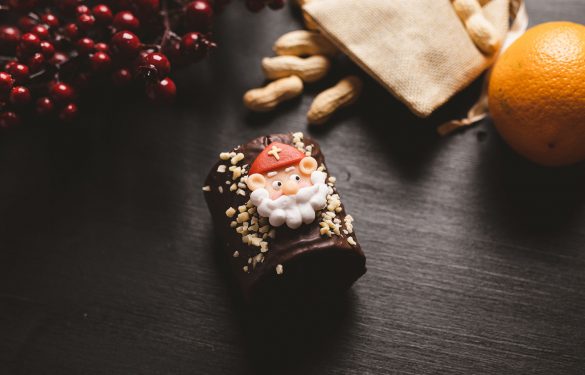 bestreut mit gehackten Mandeln, ein Nikologesicht als Dekoration.
