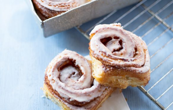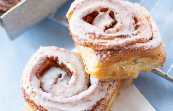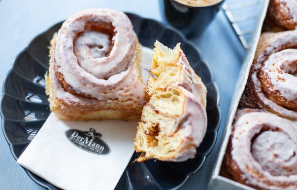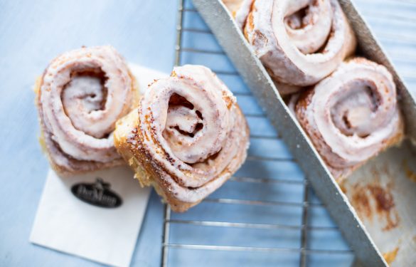 Unser beliebter Butterplunderteig wird mit Butter und Zimtzucker bestrichen und zu einer Schnecke gerollt. Nach dem Backen mit einer Staubzucker-Frischrahm-Zimt-Glasur bestrichen.
