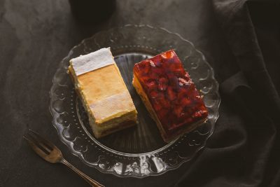im August mit zwei Kuchenstücken Ihrer Wahl Gratis! Geniessen Sie zum Beispiel unsere Klassiker: Ribisel-Schaum-Schnitte, Apfel-Butter-Streusel-Schnitte, Himbeerschnitte und Topfensouffleeschnitte!